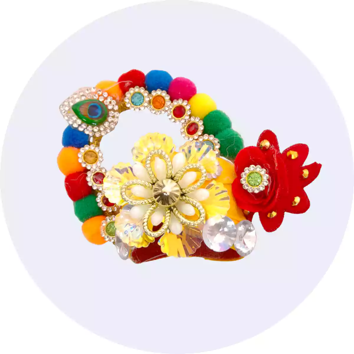 Vrindavan Puja Store Chandrika Crown for Radha Rani, Laddu Gopal & Mata Murti – Decorative Multicolor Mukut (All Sizes Available)